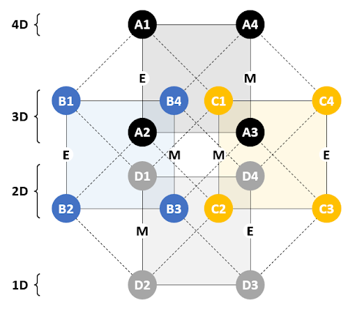 In our framing, every type can be defined by a 4-bit coordinate when fixing a dichotomy system, so that: